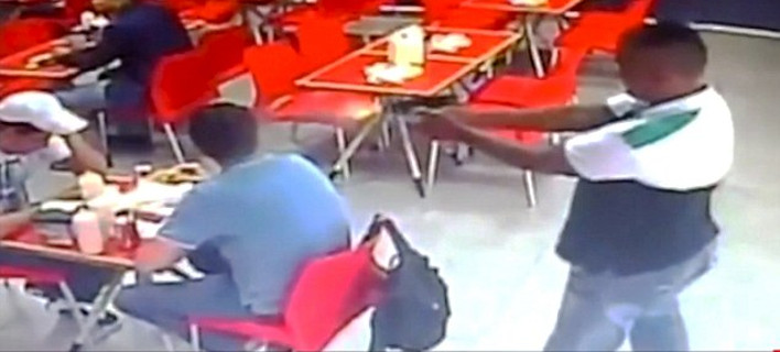 Απίστευτα σκληρή είναι η εικόνα που κατέγραψαν κάμερες ασφαλείας στον Παναμά: ενας άνδρας μπαίνει σε ένα εστιατόριο και πυροβολεί εξ επαφής το ανυποψίαστο θύμα του.